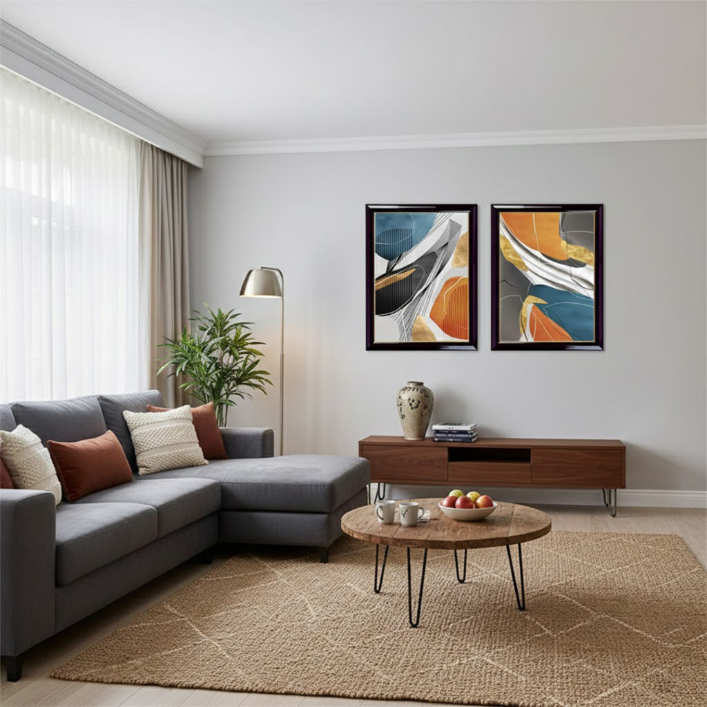 “Mimari Tasarım 2’li Duvar Sanatı Seti | Modern Geometrik Tablo | 40 x 60 Özel Mat Siyah Çerçeveli”