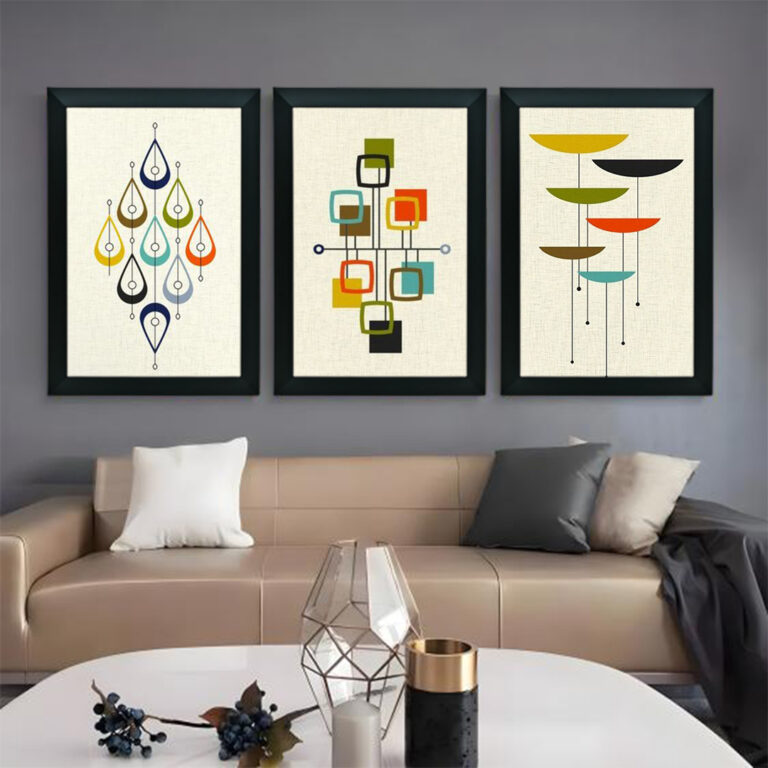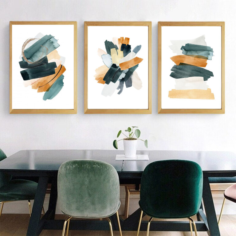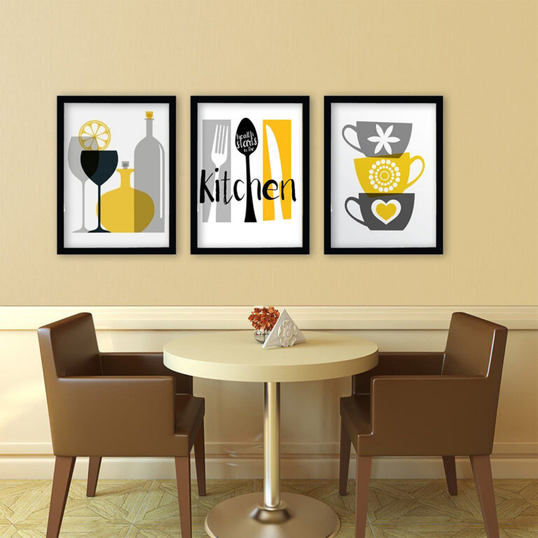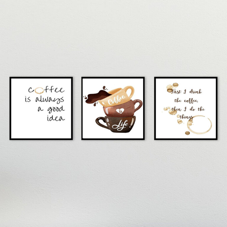 Kafe Bar Restoran Dekorasyonu İçin 3’lü Modern Çerçeveli Duvar Tablo Seti
