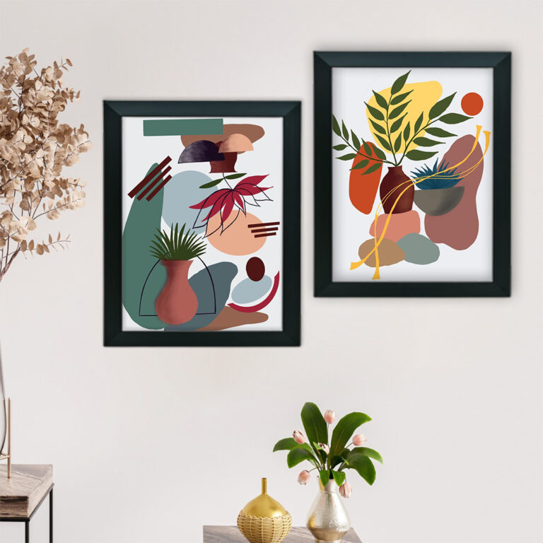 Modern Soyut 2’li Çerçeveli Tablo Seti – Modern Dekorasyonun Tamamlayıcısı