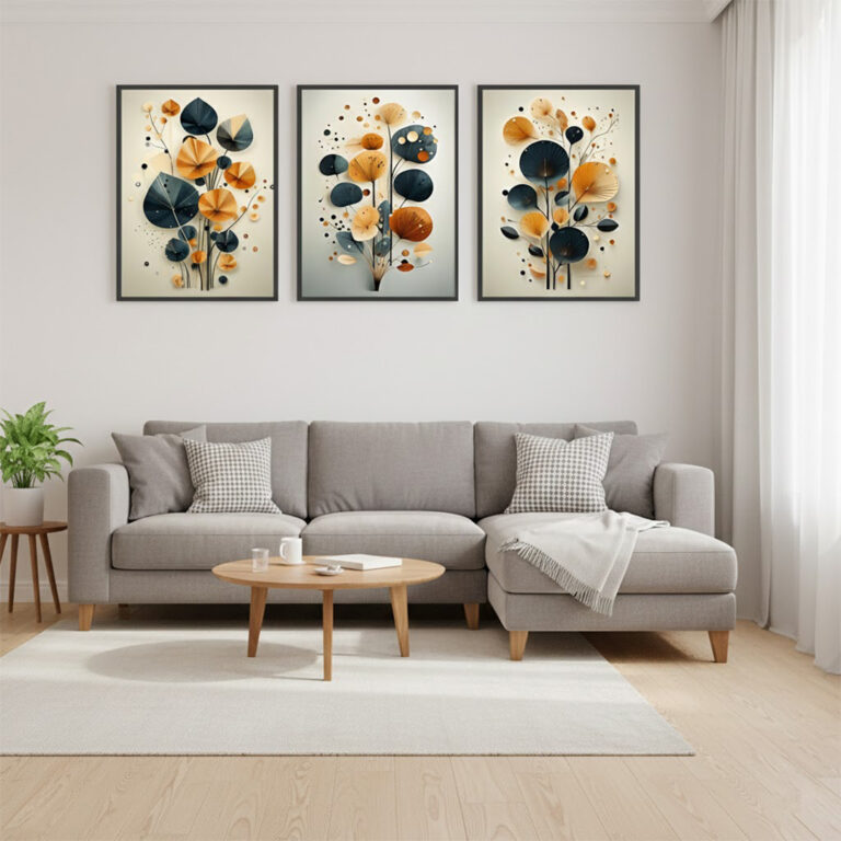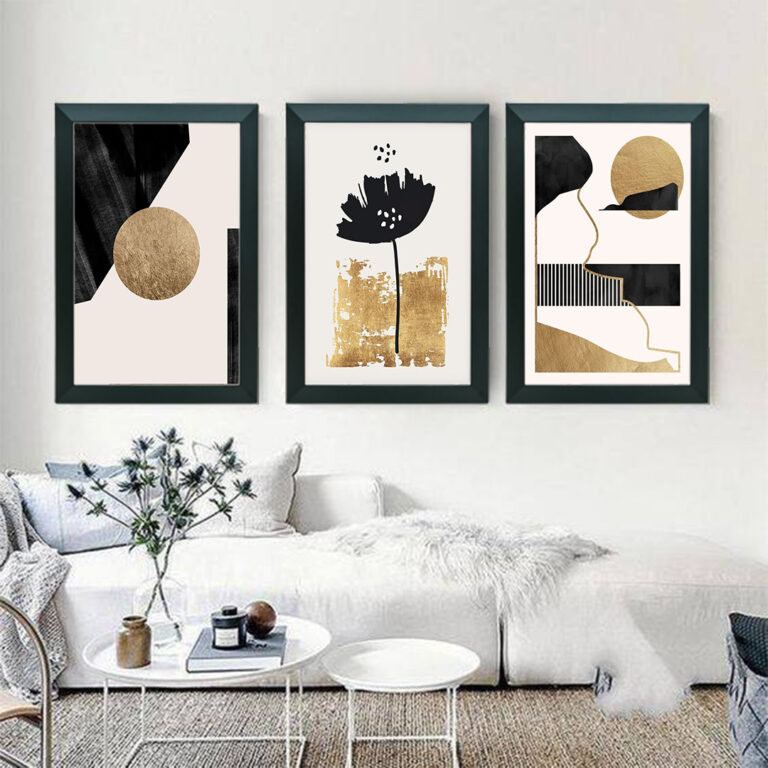 Lüks Ofis ve Salon Dekorasyonu 3 Parçalı Modern Soyut Tasarım Çerçeveli Tablo Seti