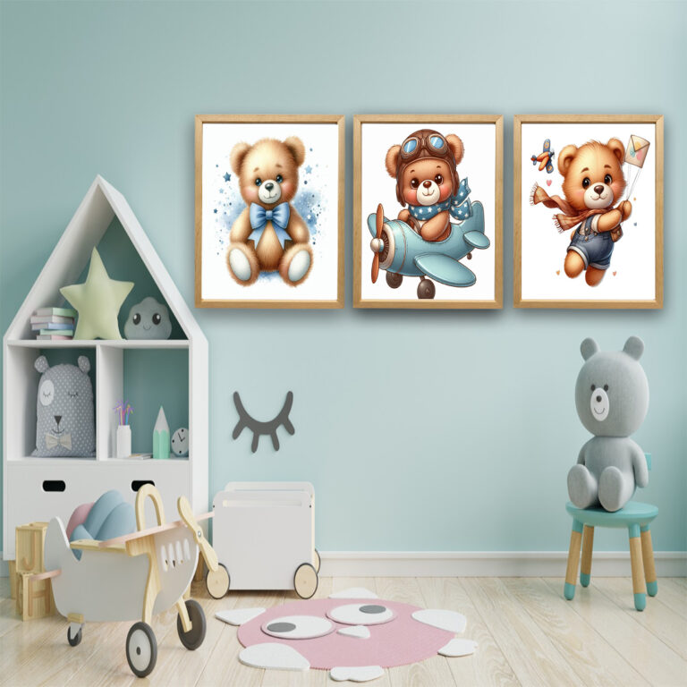 Erkek Çocuk Odası 30 X 40 Dekoratif Üçlü Tablo Seti