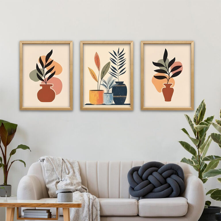 El Yapımı Görünümlü 3’lü Set -Bohem Çizgisel Retro Soyut Dekoratif Tablo
