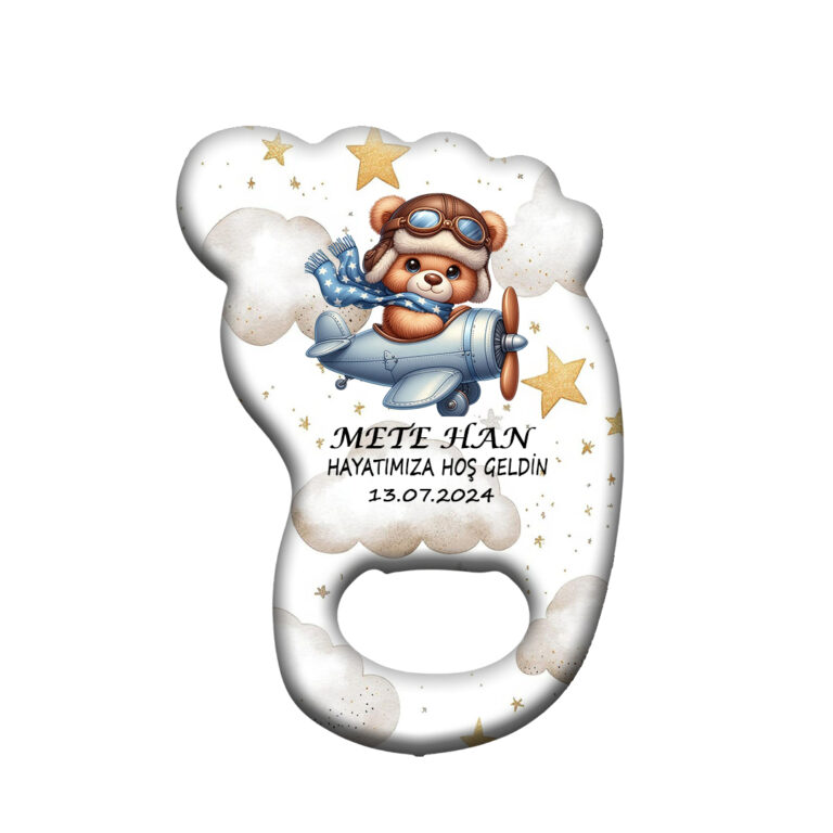 Yeni Doğan Bebek Temalı Ayak İzi Magnet Açacak – İsme Özel Uçak Konseptli Bebek Hediyeliği