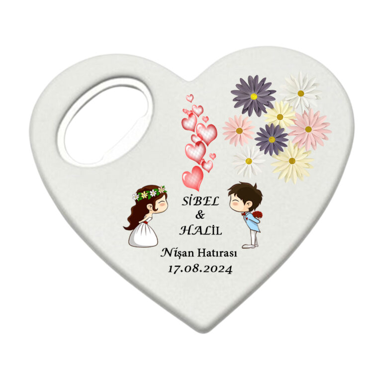 Düğün Nikah Nişan Kına Organizasyonları için Kişiye Özel Kalp Magnet Açacak