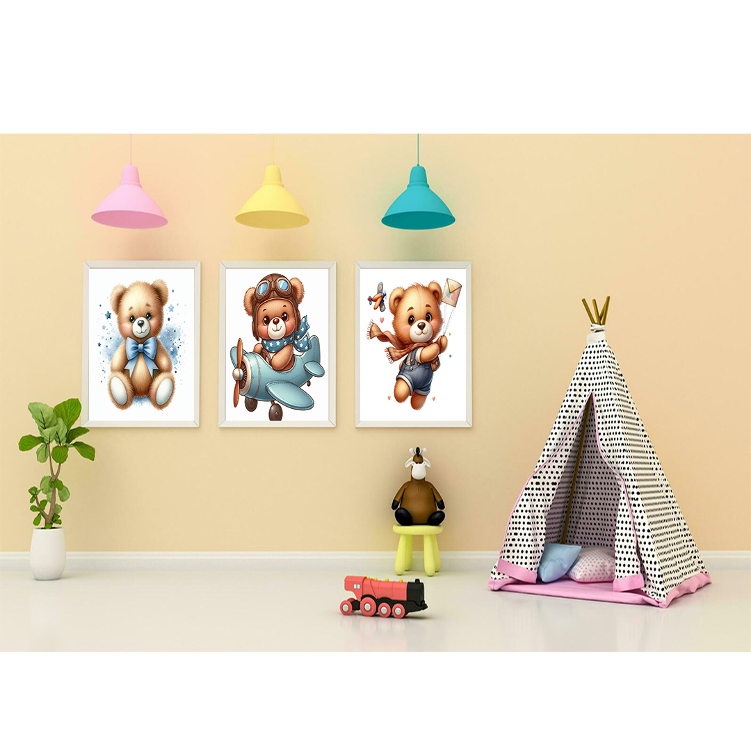 Erkek Çocuk Odası 30 X 40 Dekoratif Üçlü Tablo Seti