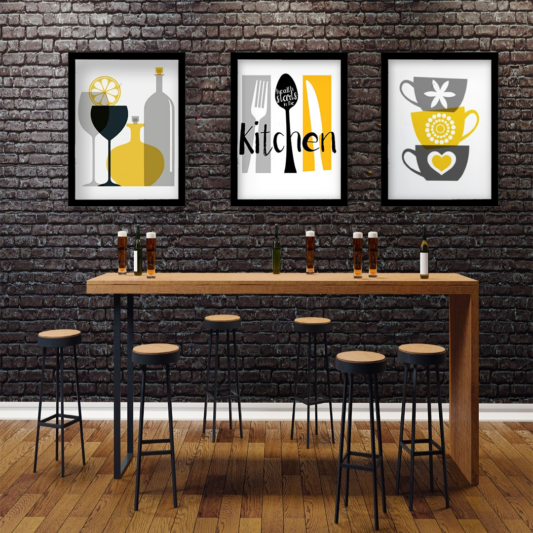 Kafe Bar Restoran Dekorasyonu İçin 3’lü Modern Çerçeveli Duvar Tablo Seti